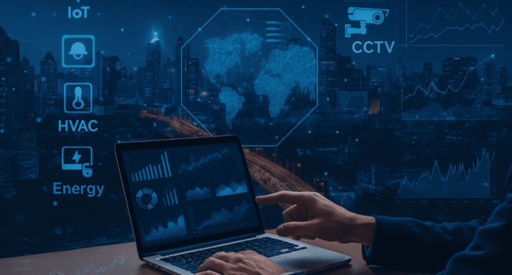 Our decision-support platforms unify inputs from diverse sources — IoT, security, CCTV, Access Control, HVAC, energy, and more — into a single environment. Designed to detect anomalies, surface trends, and enable predictive actions, these platforms transform raw data into a strategic asset.